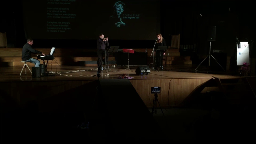 Mediante este Recital,  a través de la música se pretende hacer evidente la posibilidad de adquirir de forma innovadora un mejor conocimiento de la lengua y cultura, tanto francesa como española. En este caso, se presentará la poesía española cantada -Antonio Machado, Federico García Lorca, Miguel Hernández, Rafael Alberti o Juan Goytisolo- y la tradicional “Chanson Française” y las canciones de Brel, Brassens, Bécaud, Moustaki, Aznavour o la propia Piaf, capaces todas ellas de conmovernos a través de la letra de sus canciones y de imágenes sobre la historia de vida de cada uno de estos grandes nombres de la cultura española y/o francesa, grandes hitos de la literatura y del arte en su sentido más amplio.